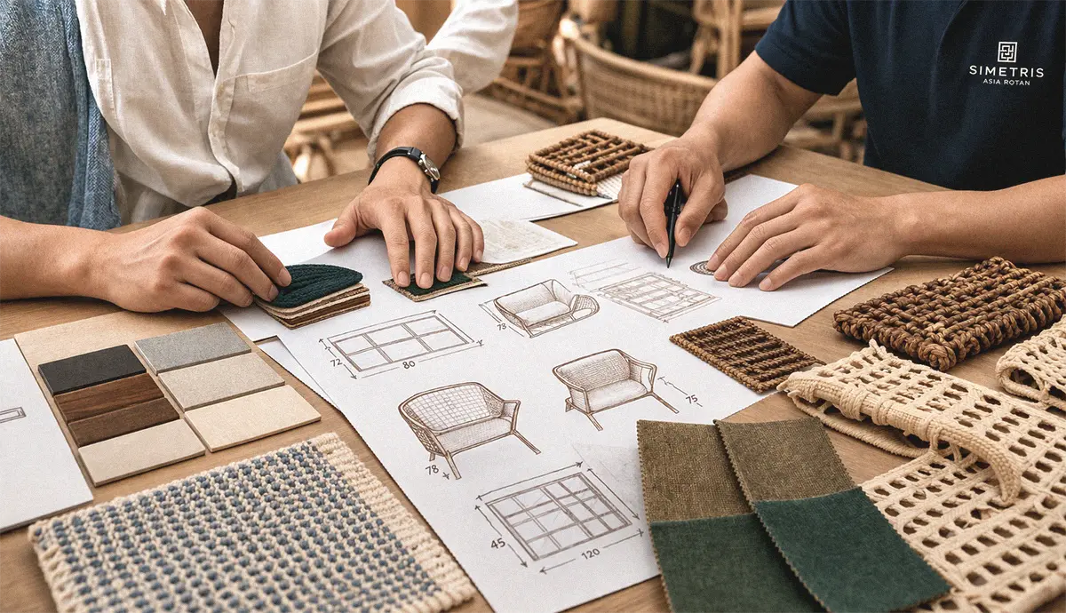 Simetris Asia Rotan works with brands, wholesalers, retailers, designers, and hospitality developers to develop and manufacture high-quality rattan furniture collections.